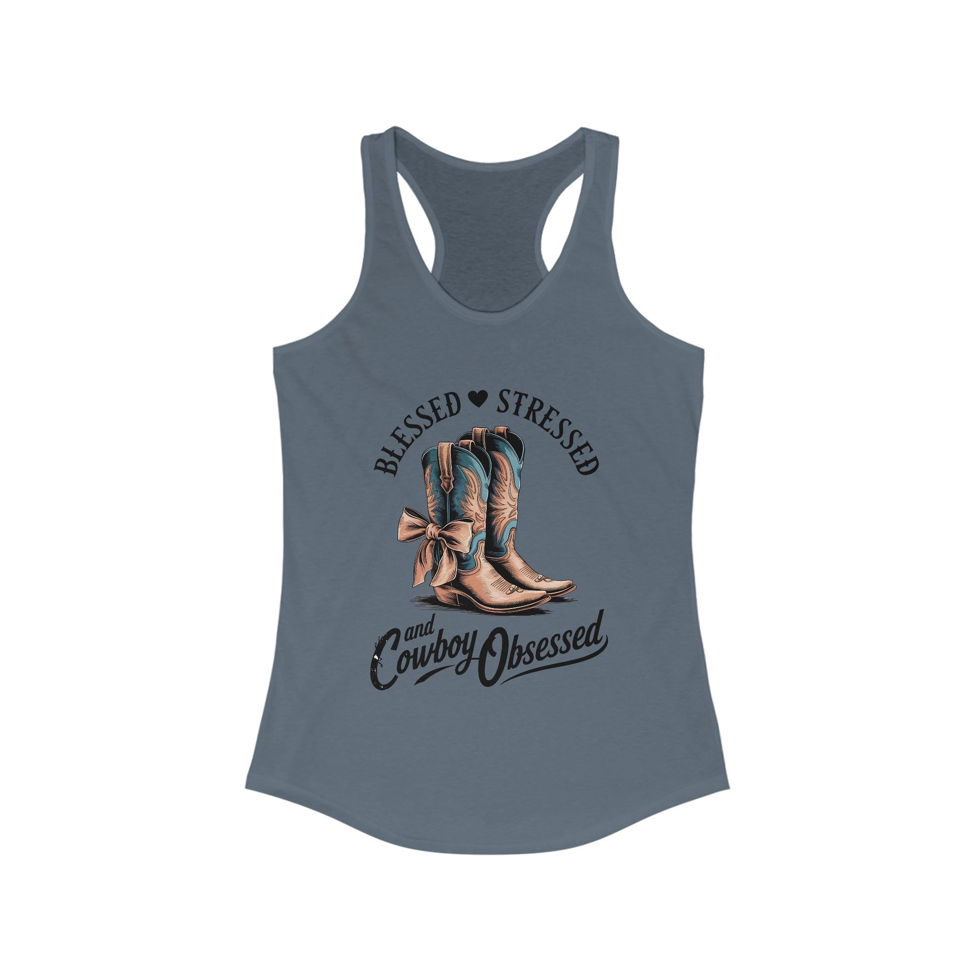 Blessed Stressed Cowboy Obsessed Racerback Tank for Women