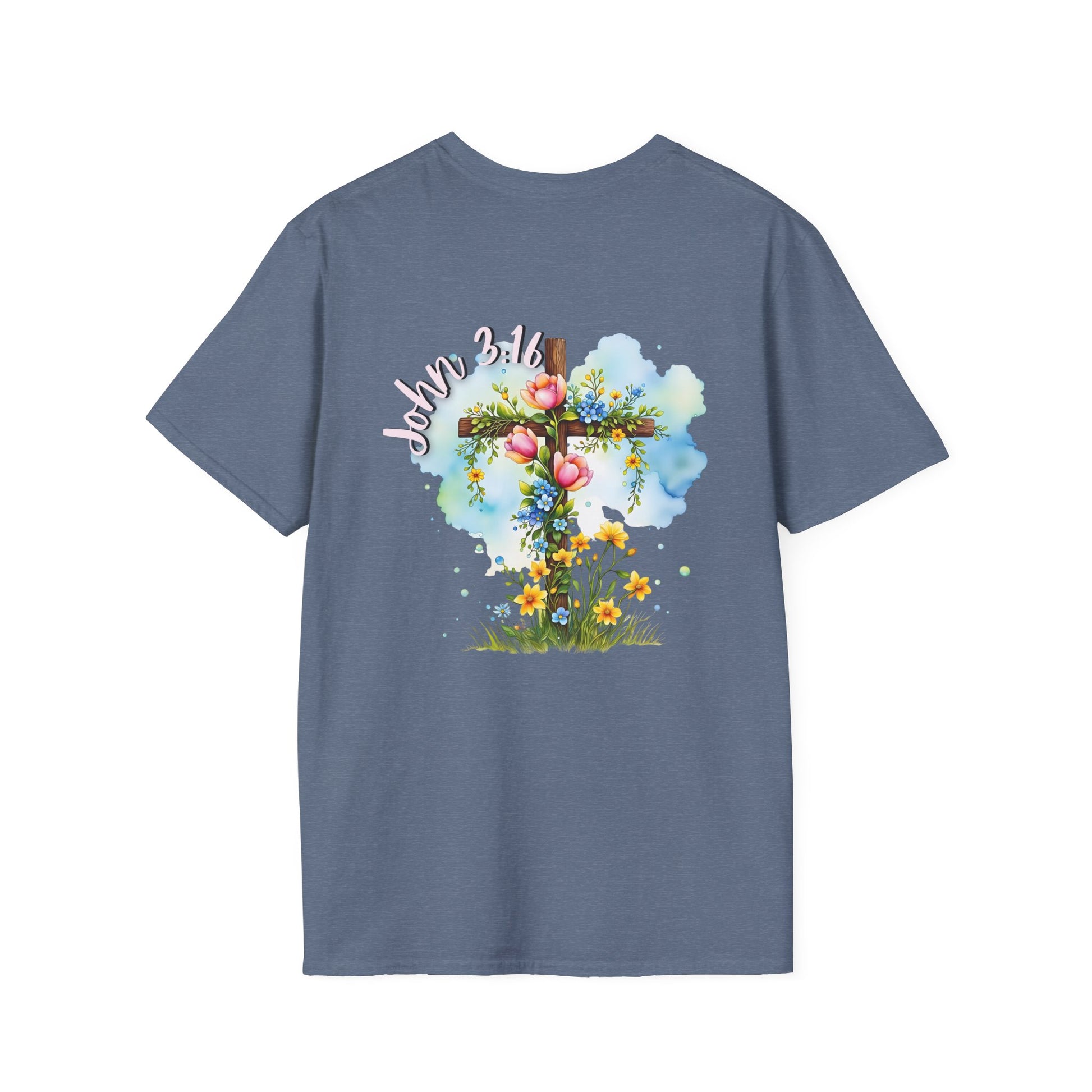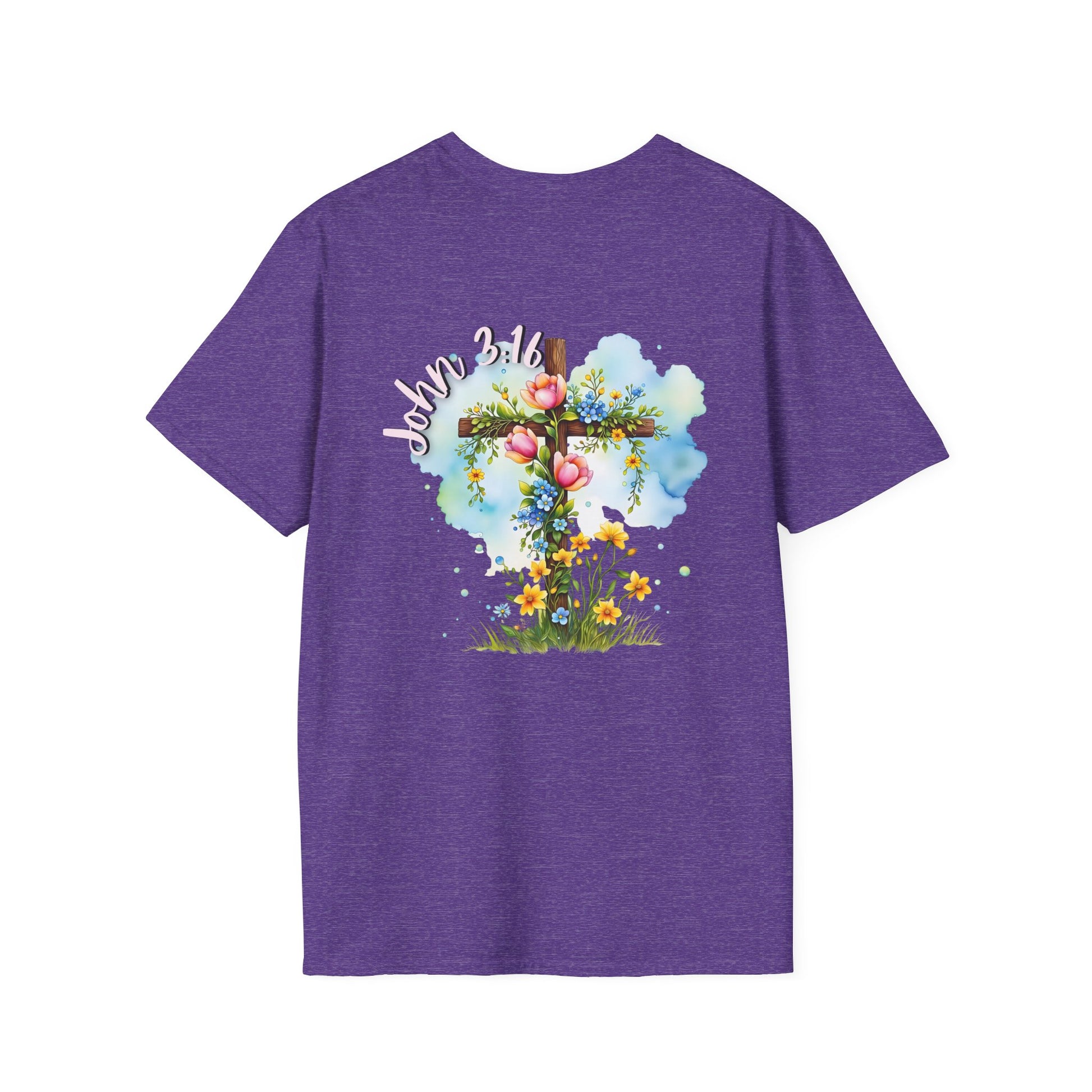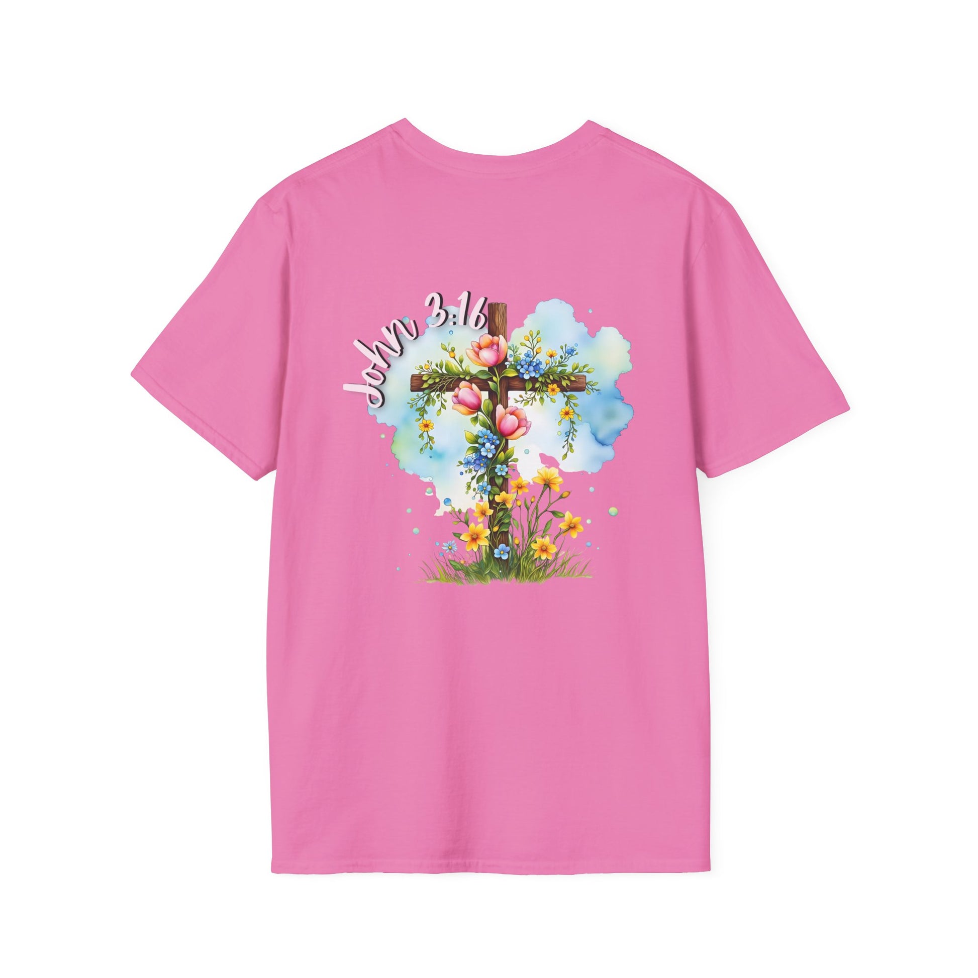 Introducing a beautifully designed Unisex Softstyle T-Shirt that combines comfort with purpose. This shirt radiates a serene and uplifting vibe, perfect for expressing faith and celebrating meaningful occasions. Whether you're attending a religious gathering, Easter service, or simply want to share your beliefs in daily life, this t-shirt is versatile enough for any event. Its classic fit and smooth fabric make it suitable for both casual outings and semi-formal gatherings. Ideal for adults of all backgrounds, this shirt is a thoughtful gift for holidays like Easter, Mother’s Day, or simply to inspire those around you.