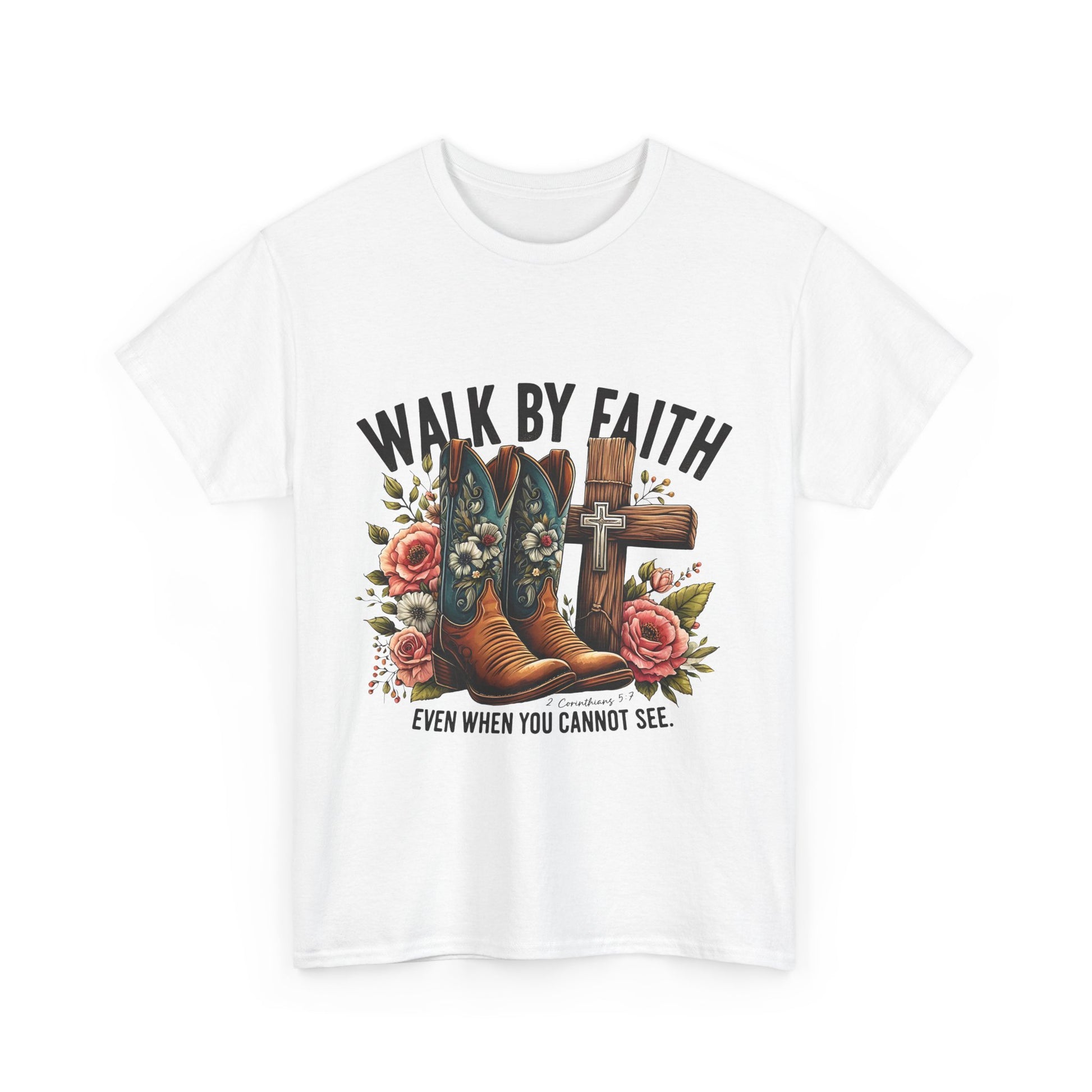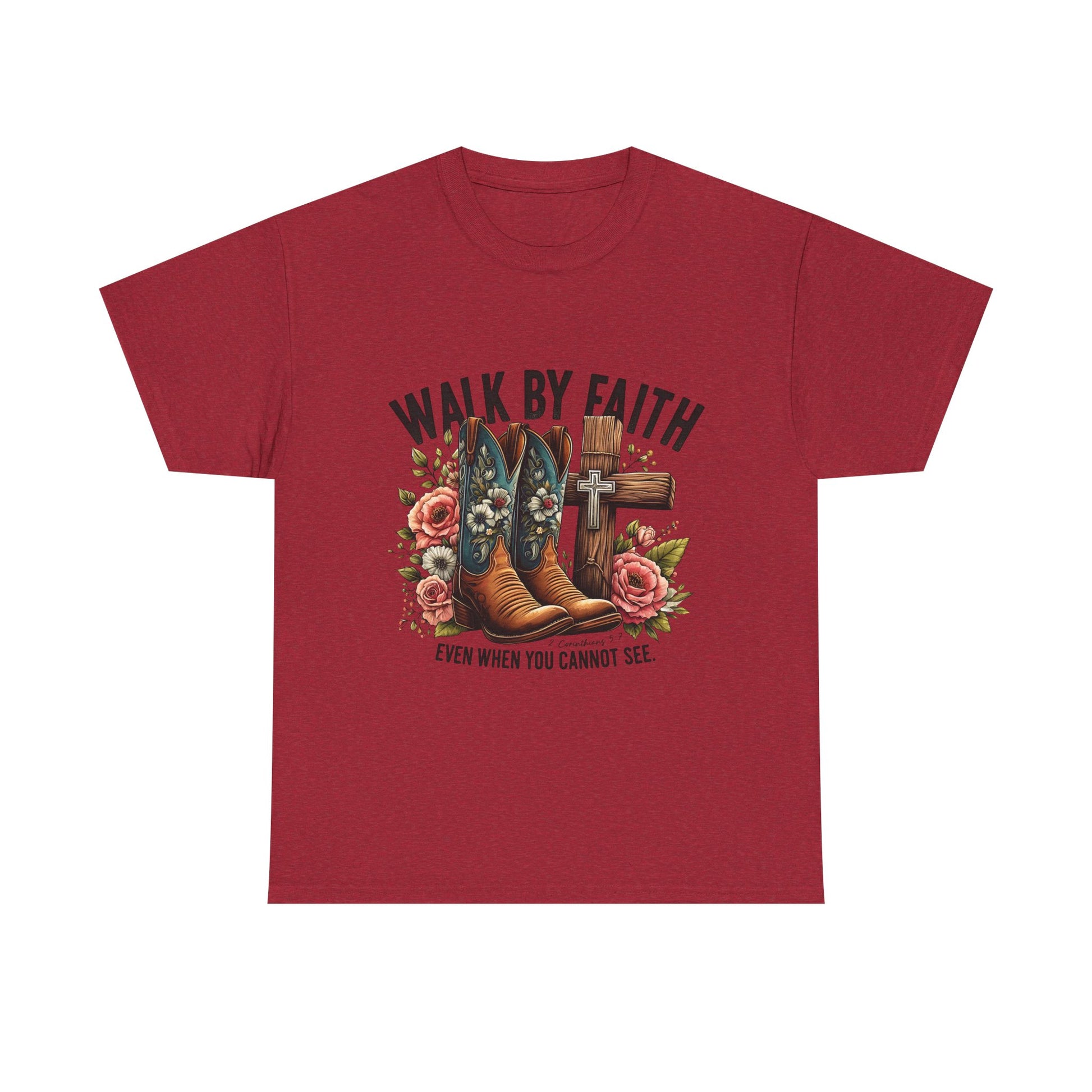 Cowgirl Boots "Walk By Faith" - Inspirational Christian T-Shirt