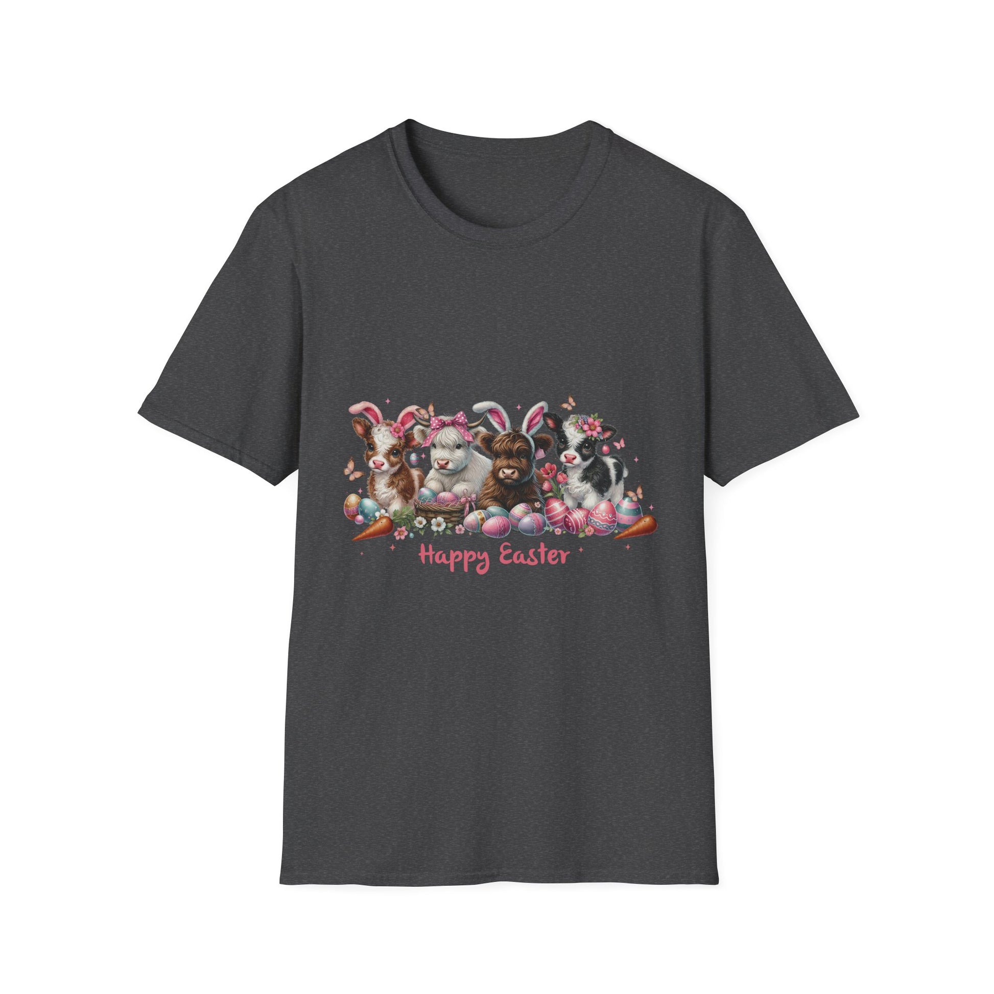 Embrace the joy of the Easter season with this charming Unisex Softstyle T-Shirt. Featuring a delightful design of adorable bunnies and vibrant Easter eggs, this tee radiates a fun and festive vibe. Its lightweight fabric ensures comfort, making it perfect for family gatherings, egg hunts, and casual spring outings. Ideal for anyone who loves to celebrate the holiday, this shirt is perfect for adults wanting to add a touch of whimsy to their wardrobe. Celebrate Easter in style or gift it to friends and family looking for cheerful seasonal attire.