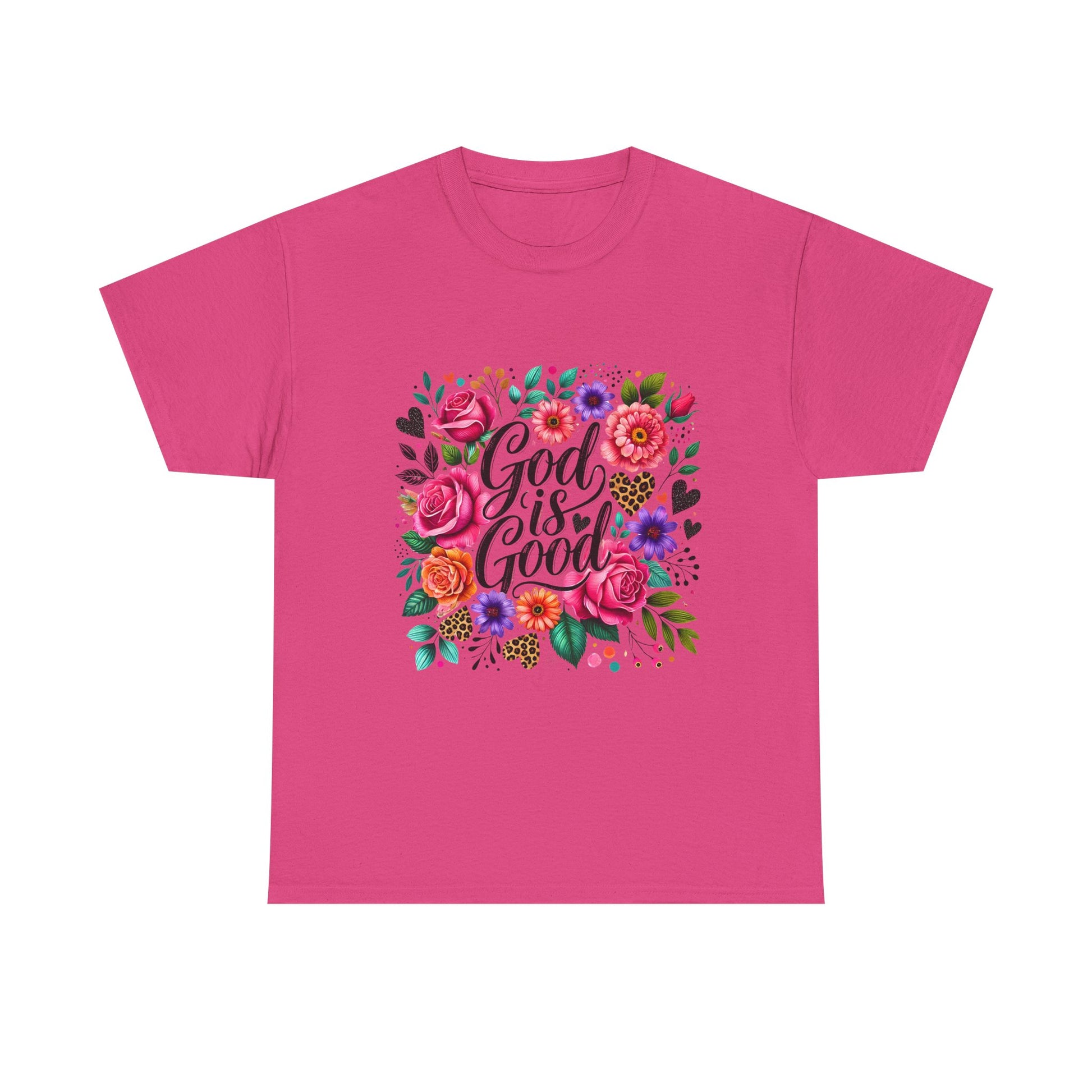 Inspirational Floral Tee - 'God is Good' Unisex Heavy Cotton T-Shirt