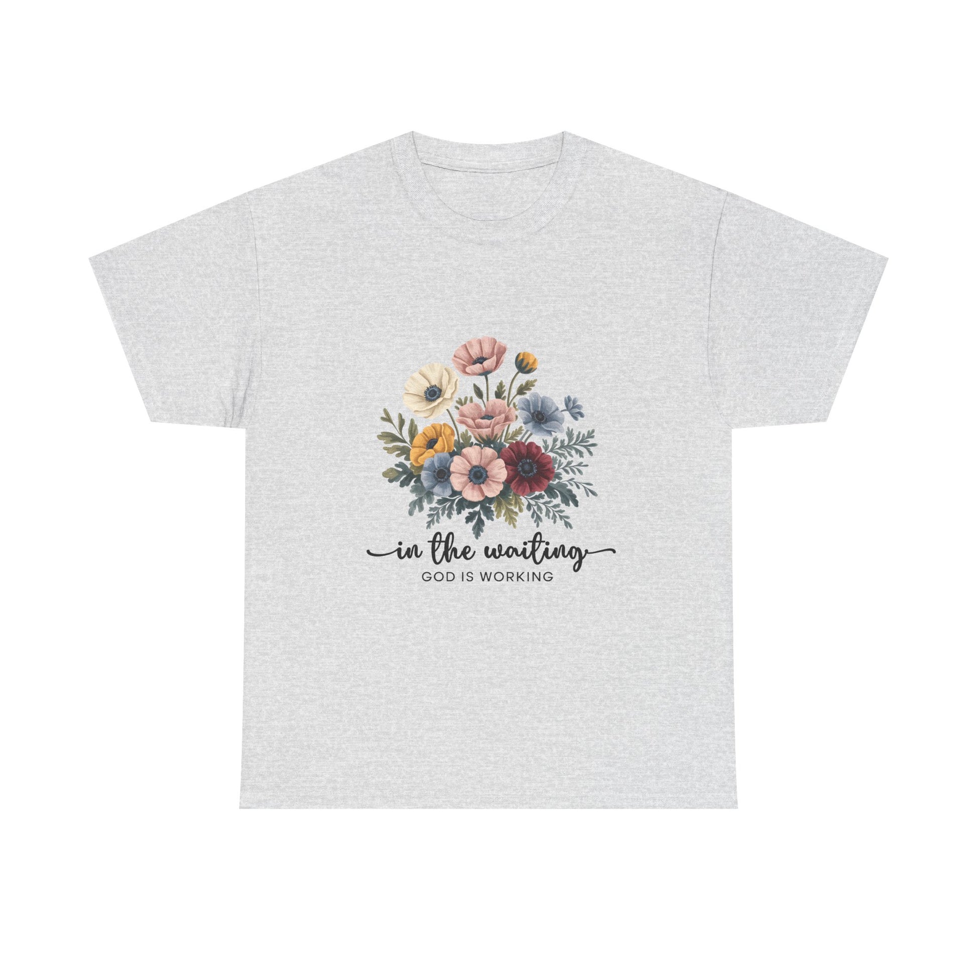 Inspirational Floral Unisex Heavy Cotton Tee - "In the Waiting, God is Working"
