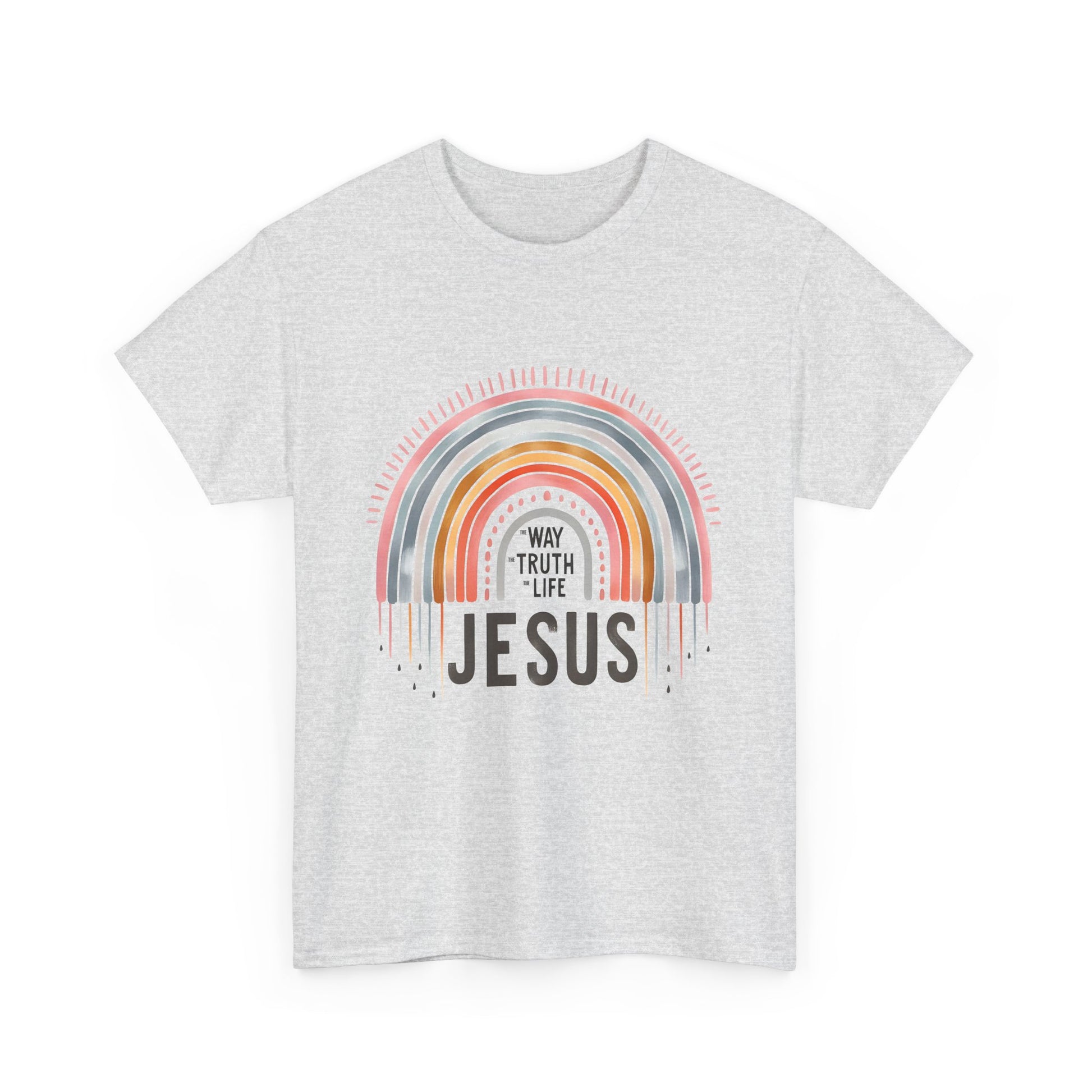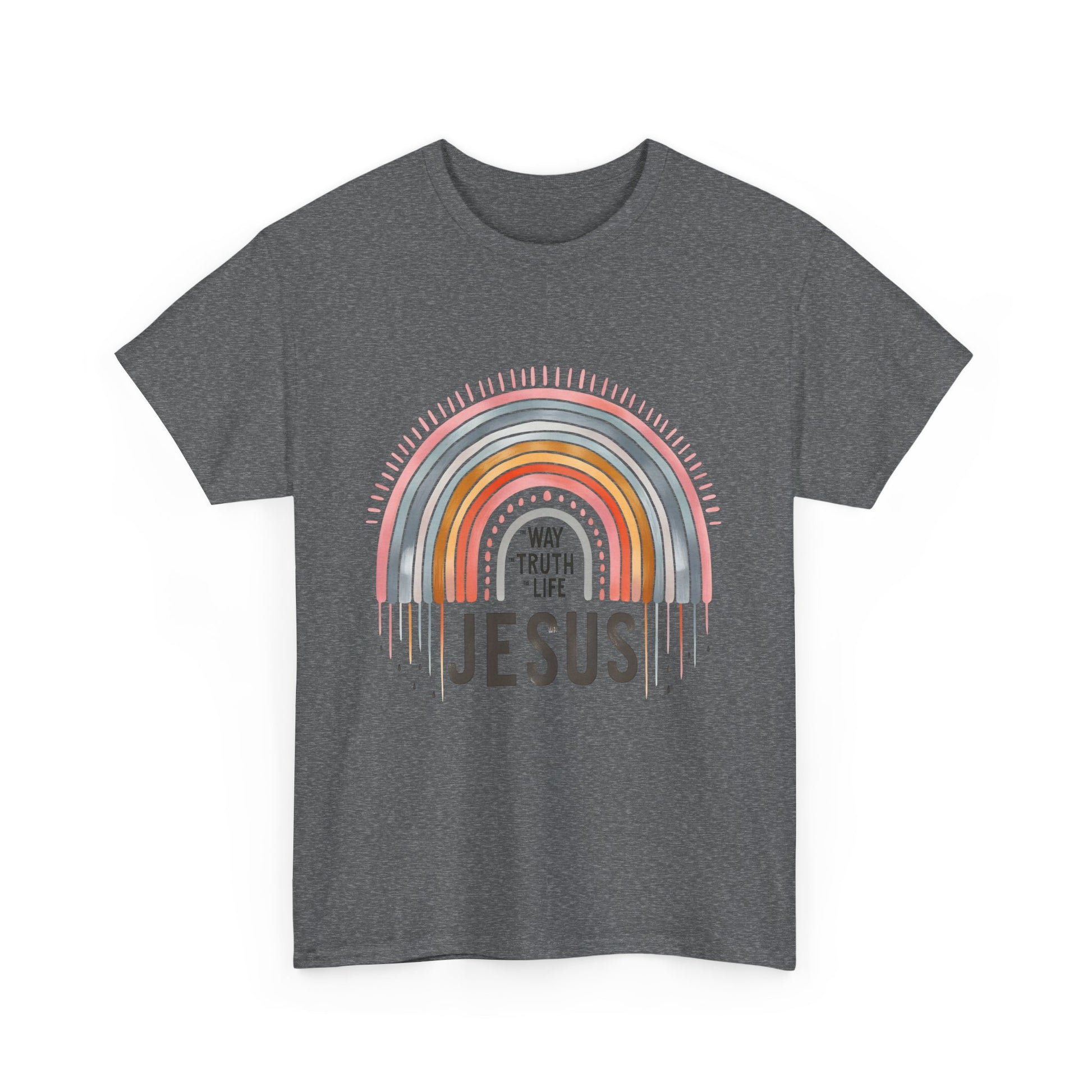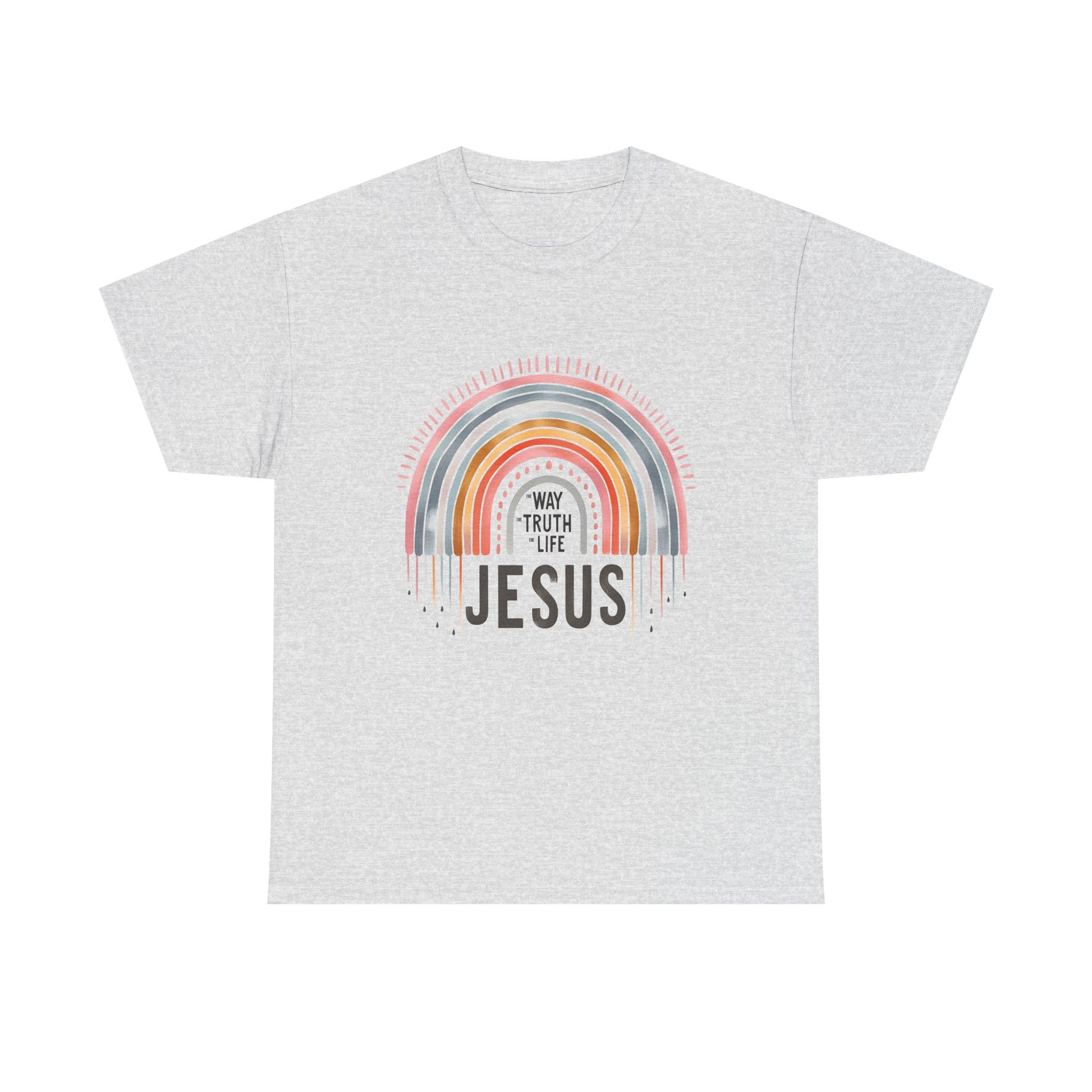 Introducing our Unisex Heavy Cotton Tee, a versatile wardrobe staple that effortlessly blends comfort and style. This tee features a vibrant rainbow that radiates positivity, making it perfect for those who want to express their beliefs with fashion. Imagine wearing this at casual gatherings, church events, or celebrating special occasions with friends and family. Whether you're gifting it during the holiday season, celebrating a baptism, or simply wearing it on a day out, this tee is made for everyone who embraces their faith in everyday life.