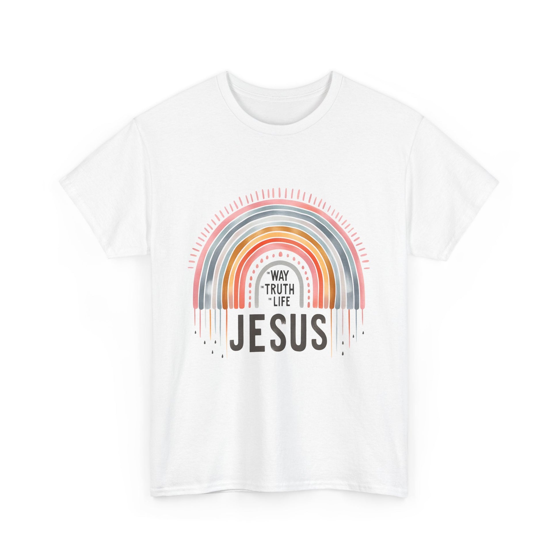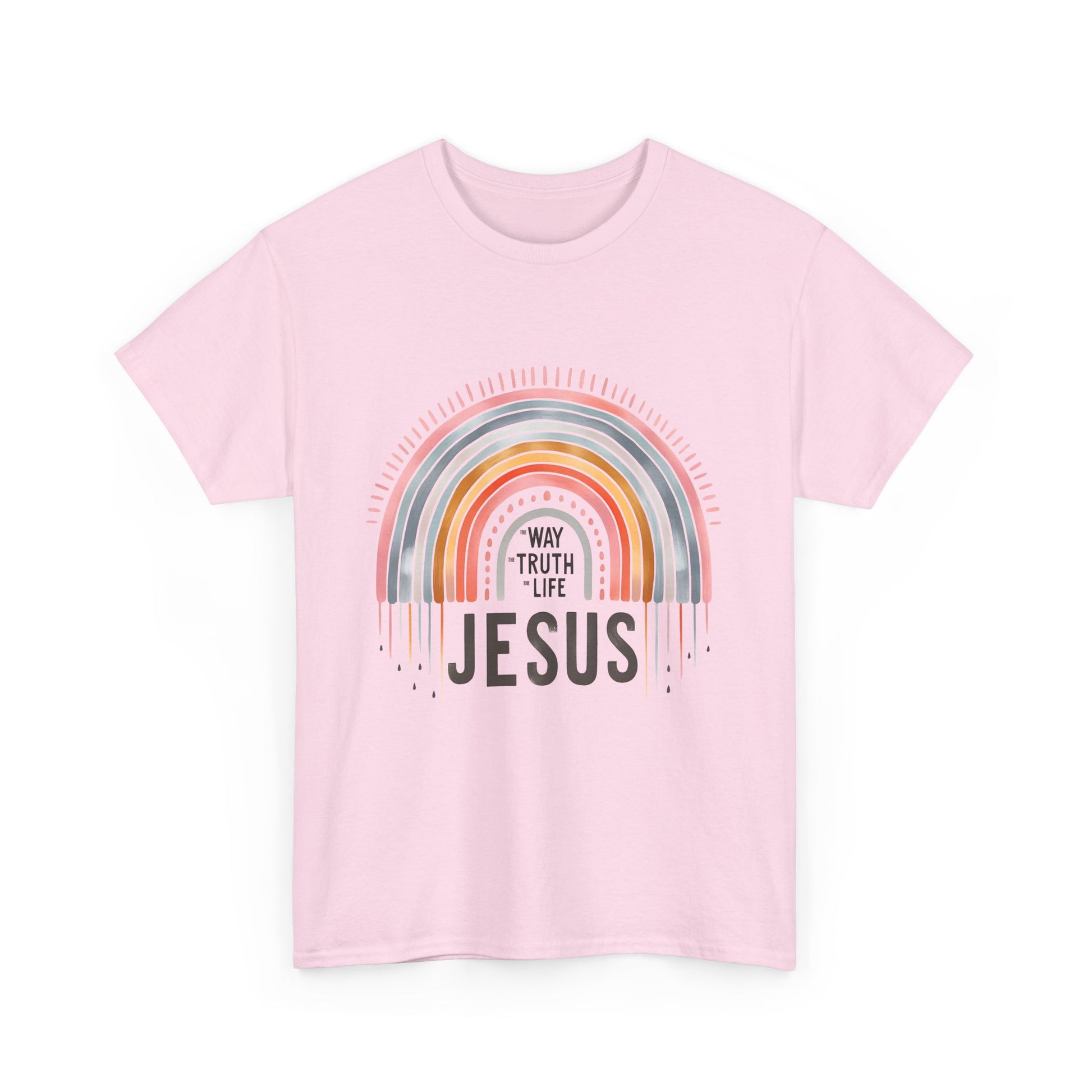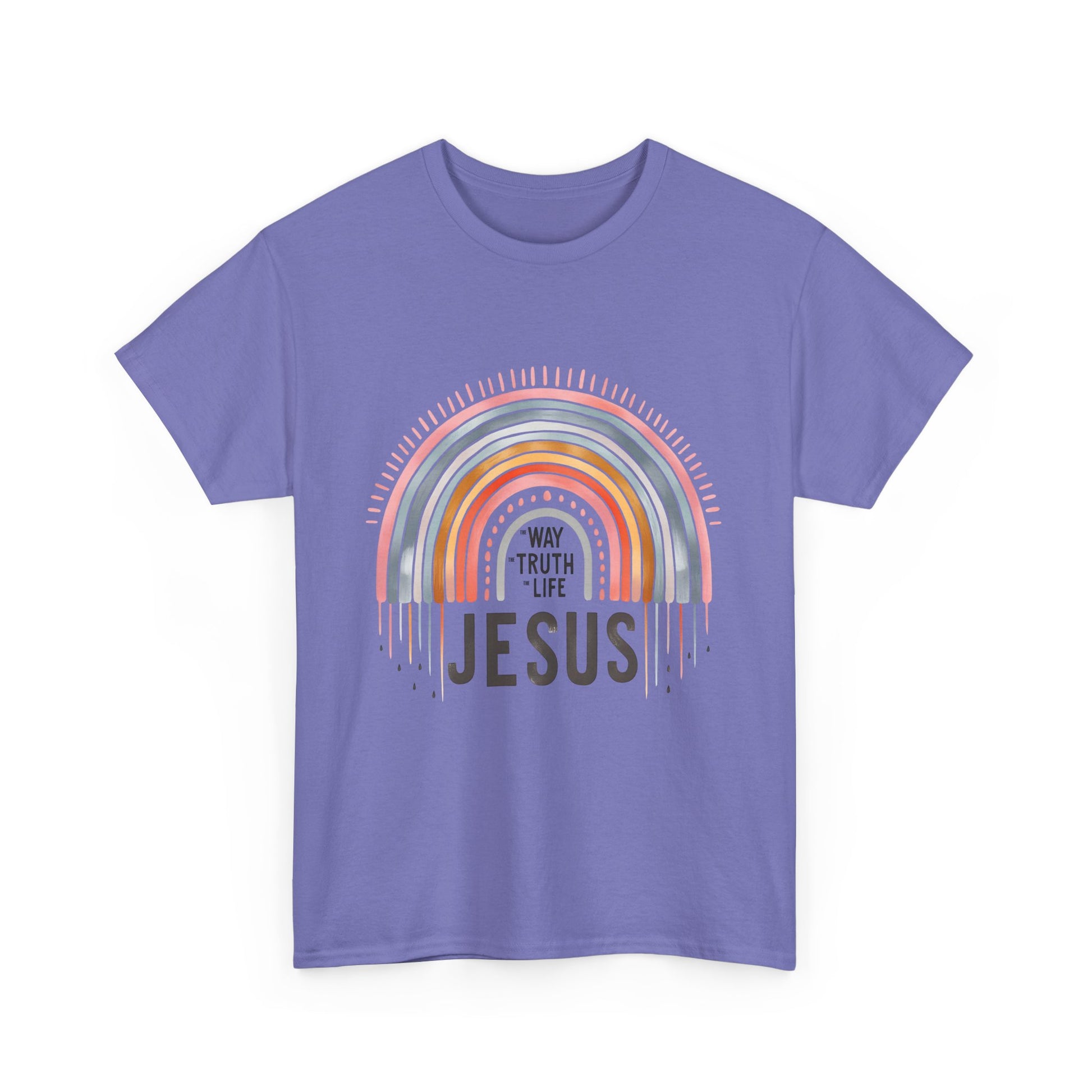 Introducing our Unisex Heavy Cotton Tee, a versatile wardrobe staple that effortlessly blends comfort and style. This tee features a vibrant rainbow that radiates positivity, making it perfect for those who want to express their beliefs with fashion. Imagine wearing this at casual gatherings, church events, or celebrating special occasions with friends and family. Whether you're gifting it during the holiday season, celebrating a baptism, or simply wearing it on a day out, this tee is made for everyone who embraces their faith in everyday life.